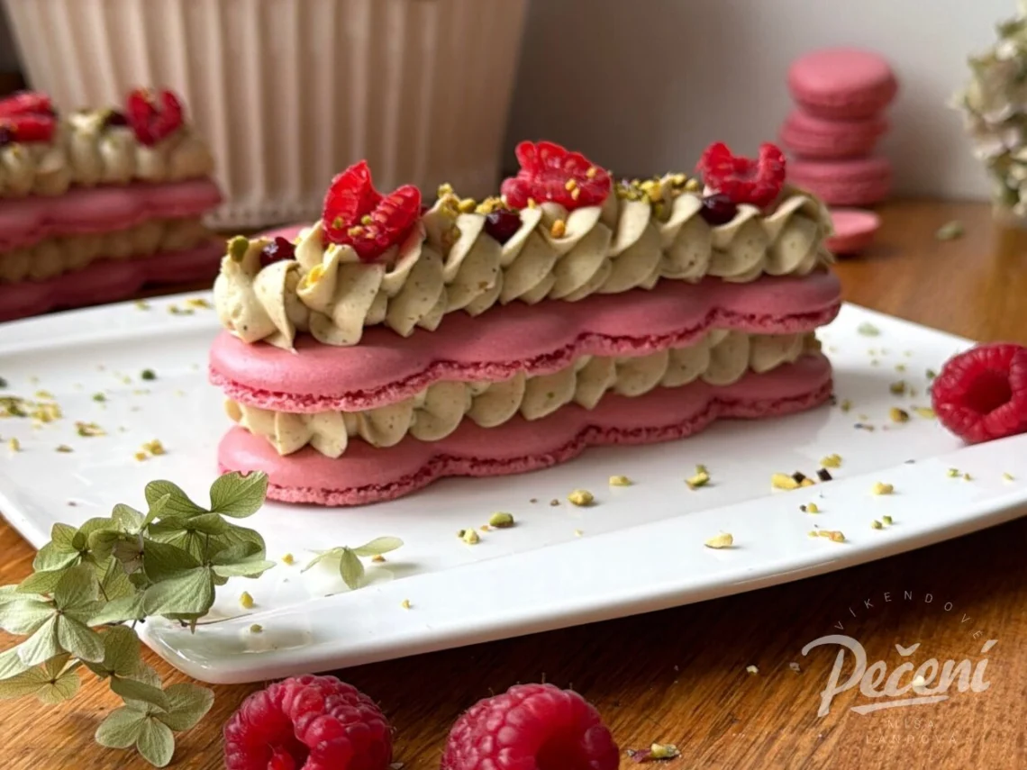 Makronka nebo dortík Občas stačí malá změna tvaru a vznikne úplně nový dezert. Čtyři makronková kolečka vedle sebe, vrstva pistáciového krému, kapky malinového želé – a z klasické makronky je rázem malý dortík. Pistácie a malina jsou kombinací, která funguje…