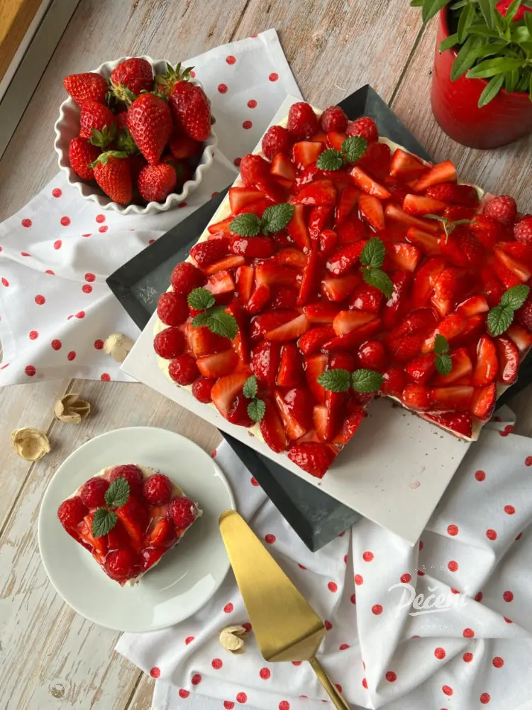 Jahodových receptů není nikdy dost a tohle je taková klasika. Nadýchaný piškotový korpus, jemný vanilkový krém a spousta šťavnatých jahod zalitých dortovým želé. Nemusíte se omezovat jen na kulatou dortovou formu, skvěle se bude vyjímat v hranaté nebo pokud zvětšíte dávku, můžete ho připravit na celý plech.